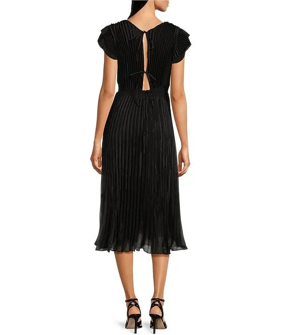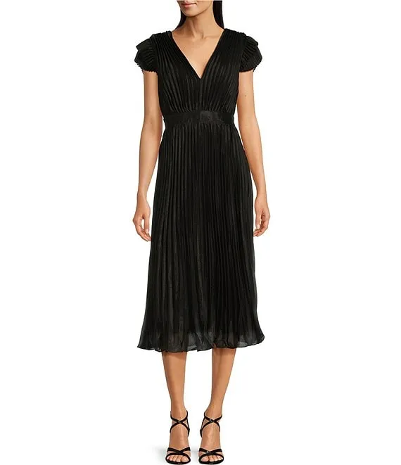 Adelyn Rae Pleated V-Neck Short Sleeve Midi Dress