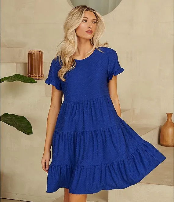 Roam Around Swiss Dot Tiered Round Neck Short Sleeve Tiered Babydoll Dress