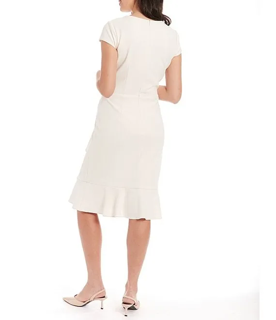 Short Sleeve V-Neck Front Cascade Ruffle Scuba Dress