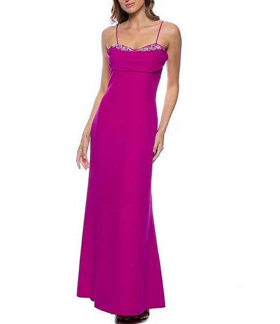Sleeveless Embellished Cowl Neck Capelet Gown