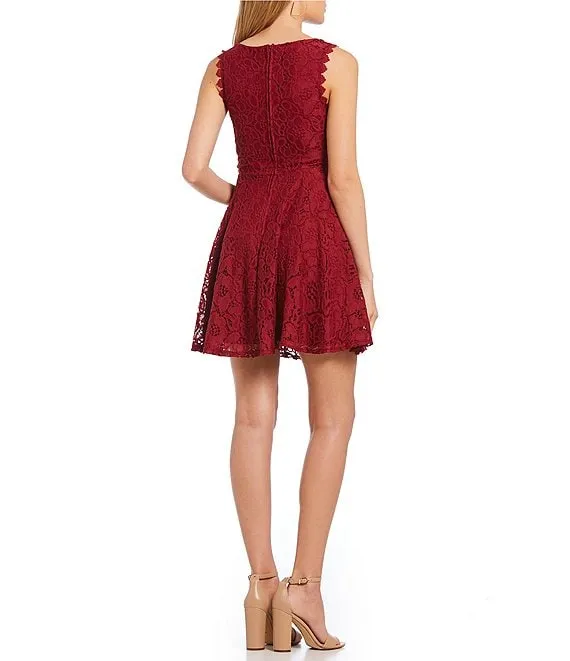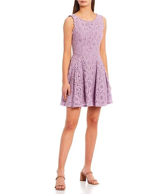 Sleeveless Scalloped Round Neckline Lace A-line Dress