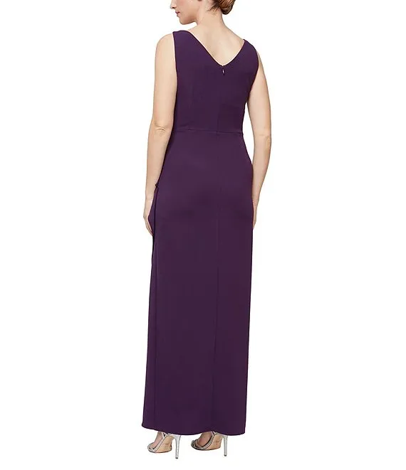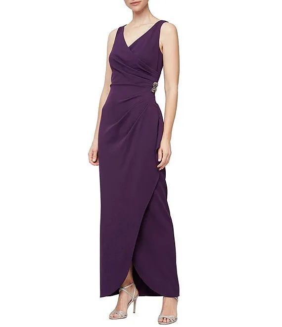 Sleeveless Surplice V-Neck Embellishment At Waist Crepe Gown