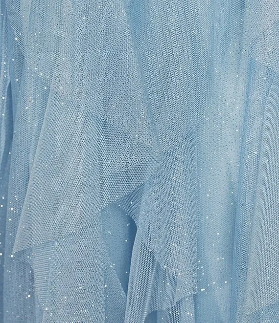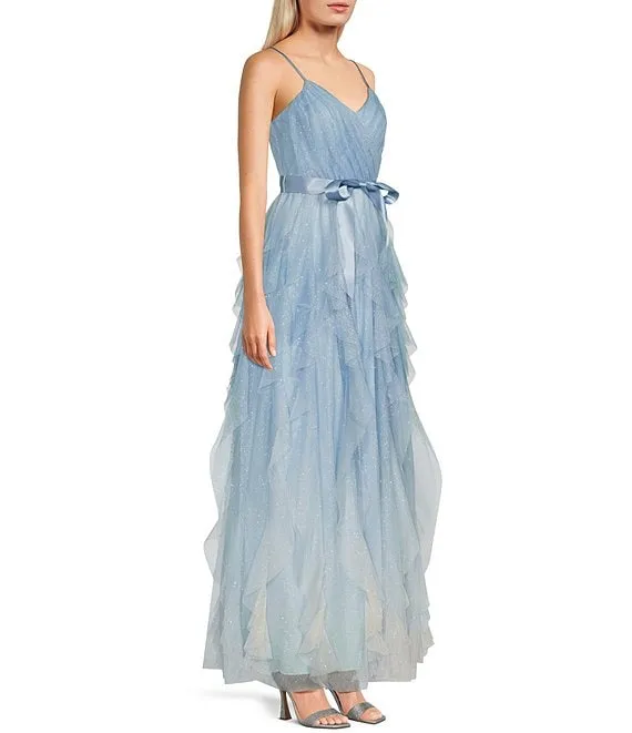 Spaghetti Strap V-Neck Glitter Ombre Mesh Corkscrew Ball Gown
