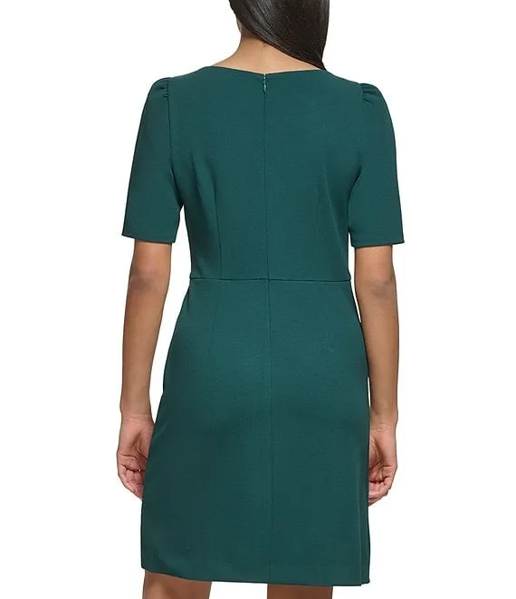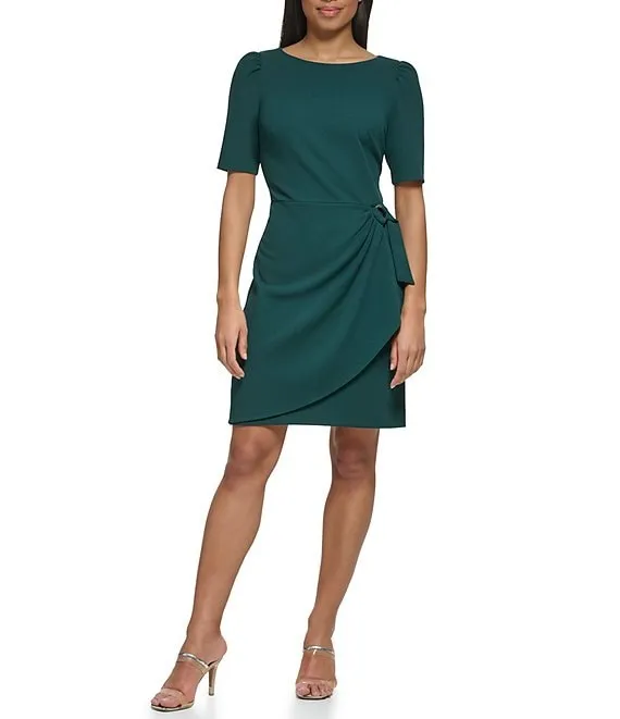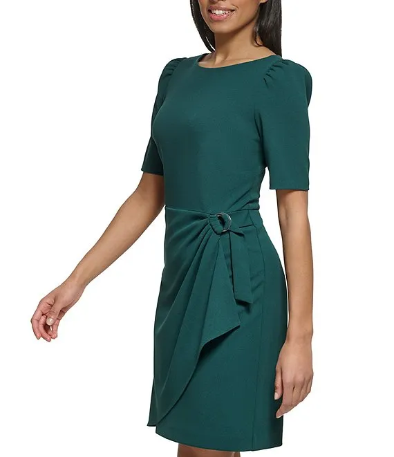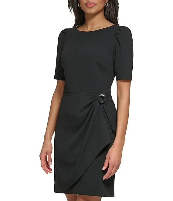 Stretch Crew Neck Short Sleeve D-Ring Wrap Skirt Overlay Sheath Dress