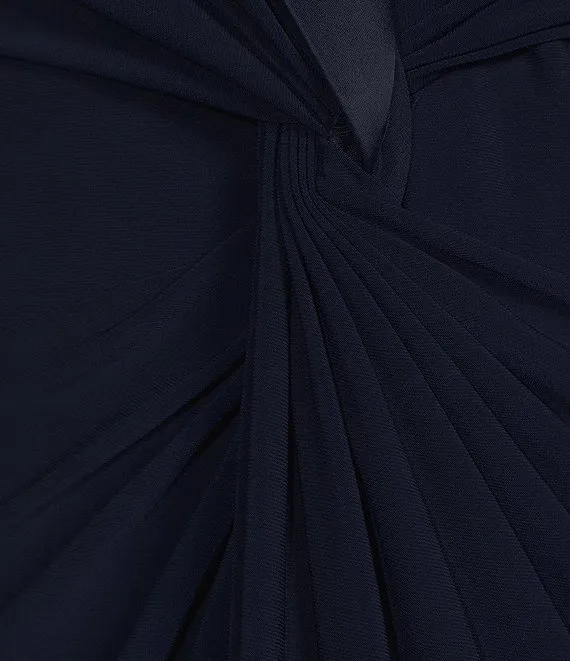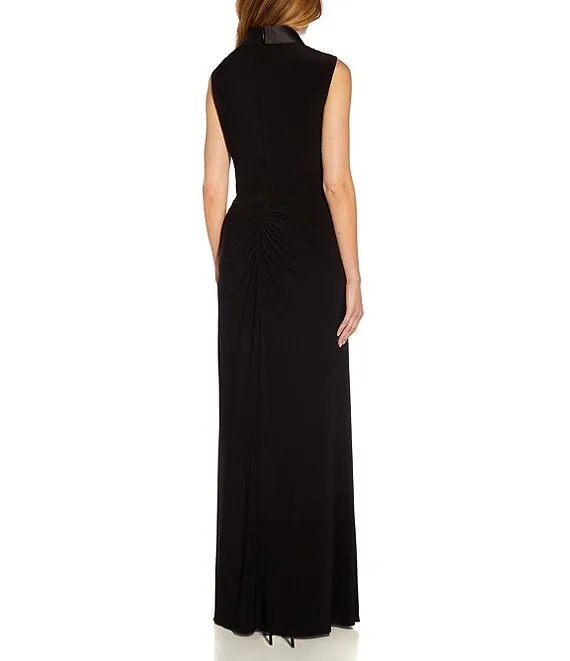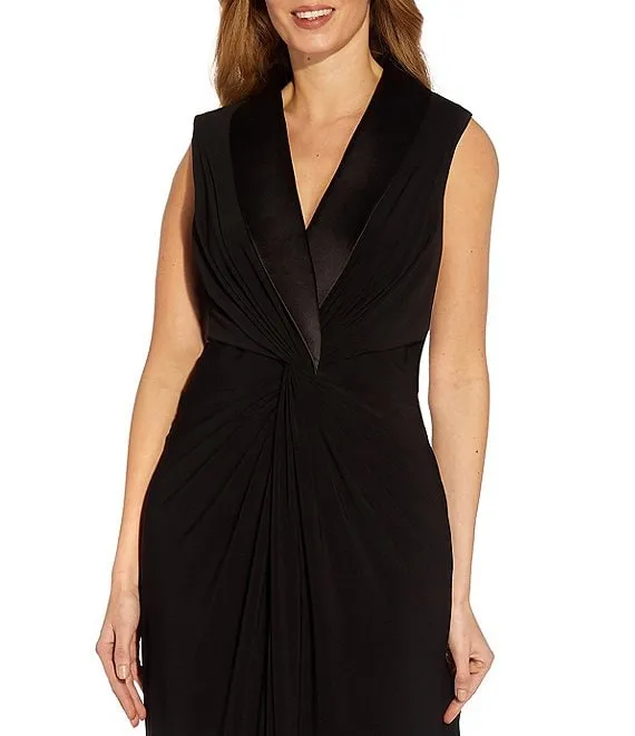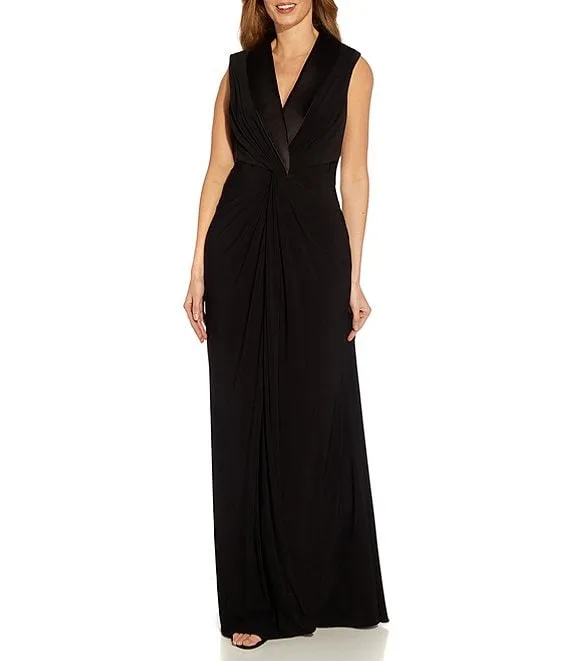 Adrianna Papell Stretch Jersey Tuxedo Surplice V-Neck Twisted Waist Sleeveless Gown