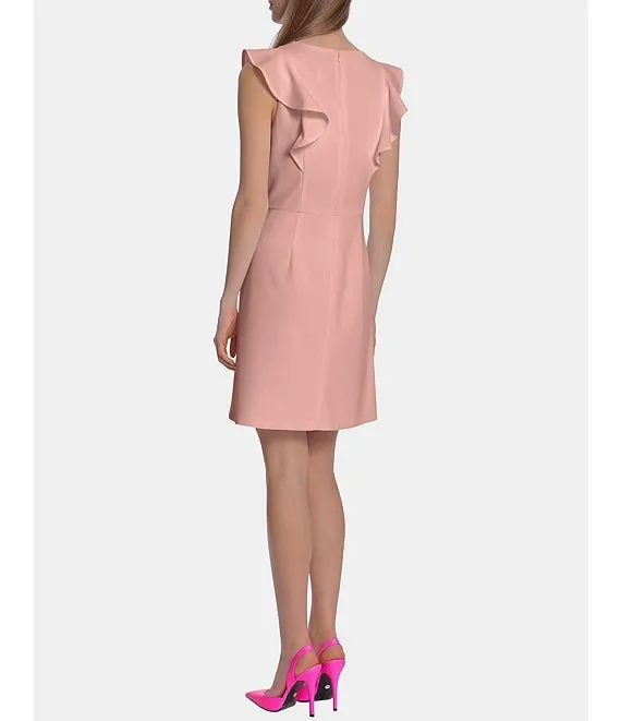 V-Neck Sleeveless Ruffle Shoulder Mini Dress