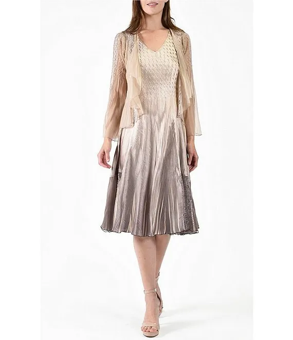 Charmeuse Chiffon Ombre V-Neck 2-Piece Jacket Dress Set