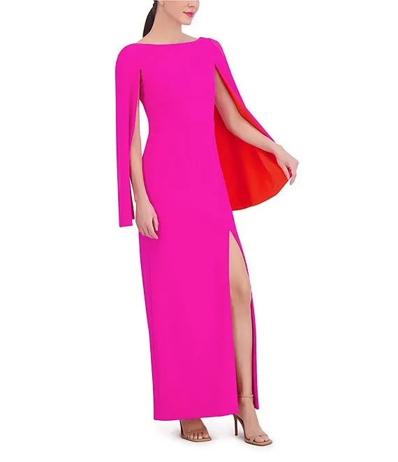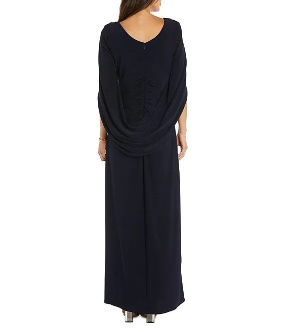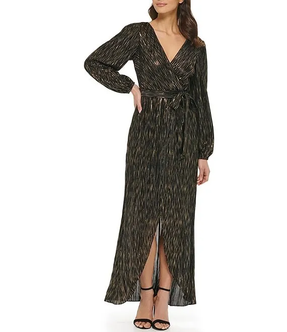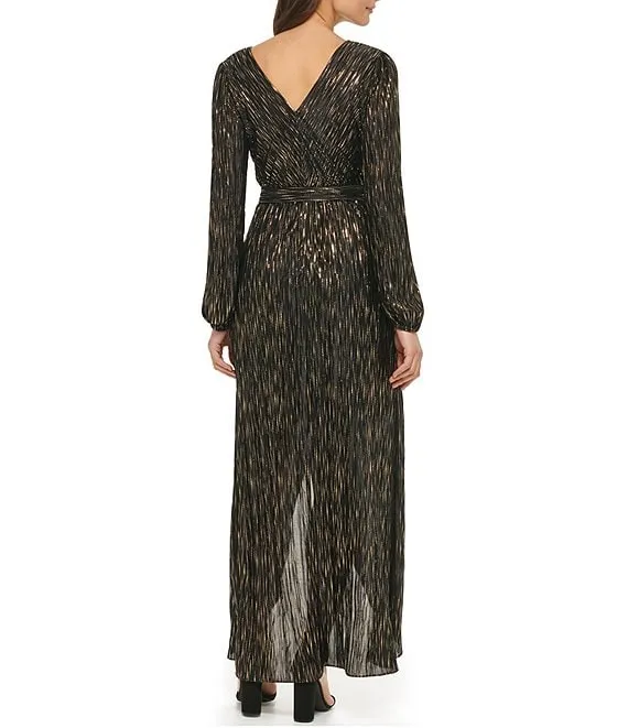 Guess Metallic Knit Surplice V-Neck Long Sleeve Asymmetrical Hem Wrap Gown