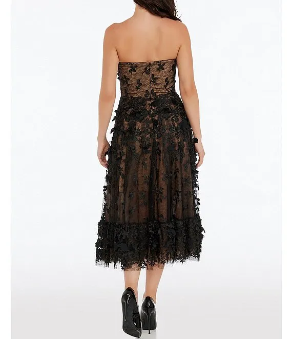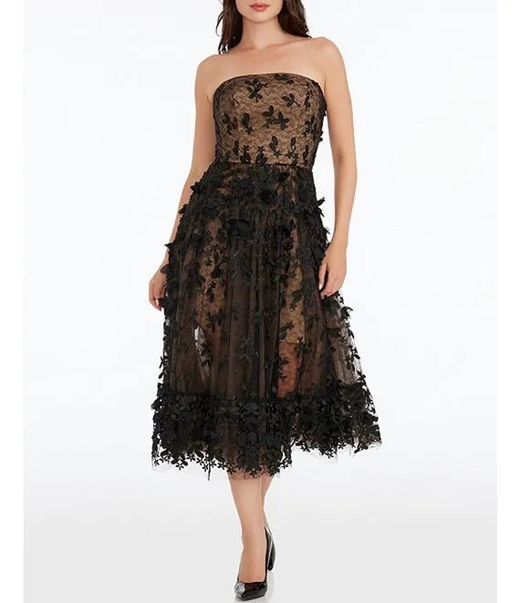 Floral Embellished Detail Sleeveless Fit and Flare Strapless Dress