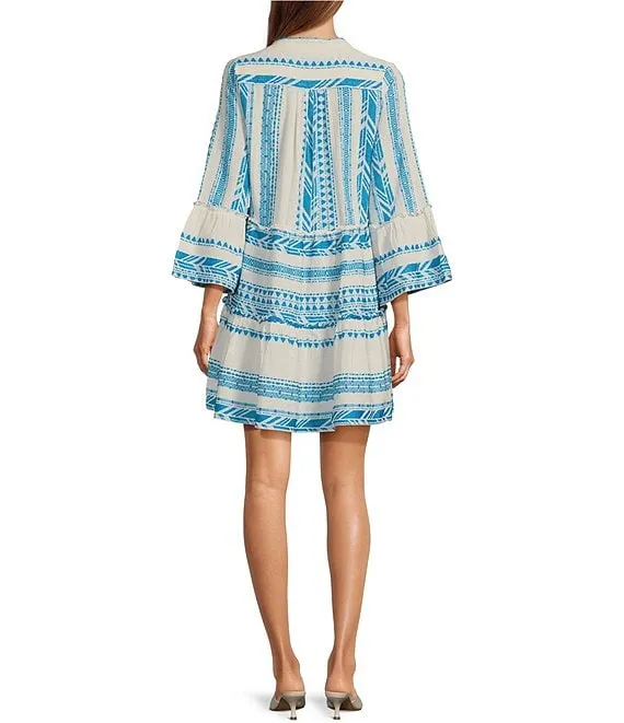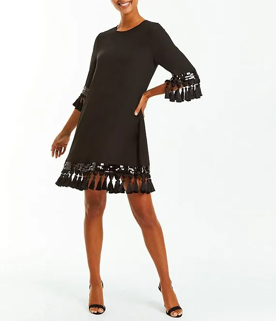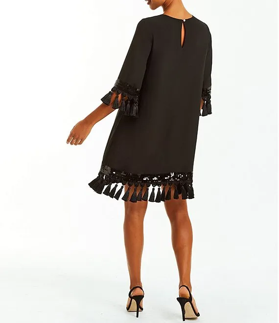Shimmy Tassel & Sequin Trim Elbow Sleeve Shift Mini Dress