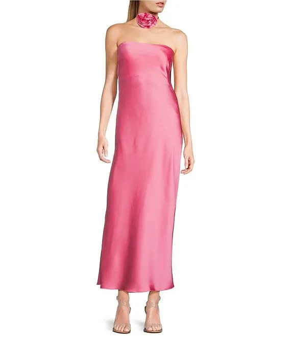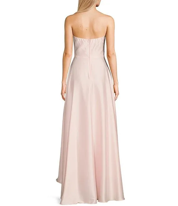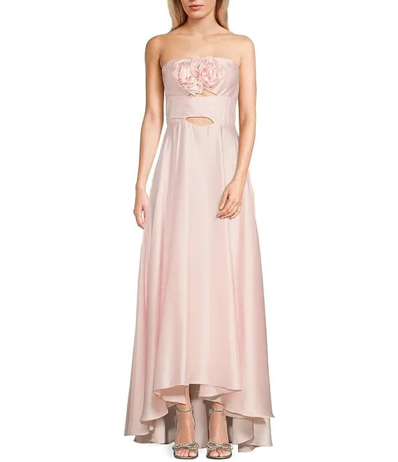 Strapless Sweetheart Neck Rossette Cut Out Hi-Low Dress