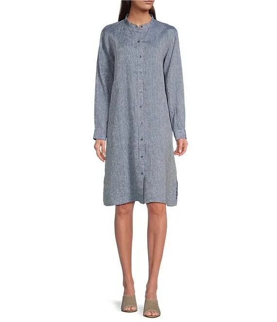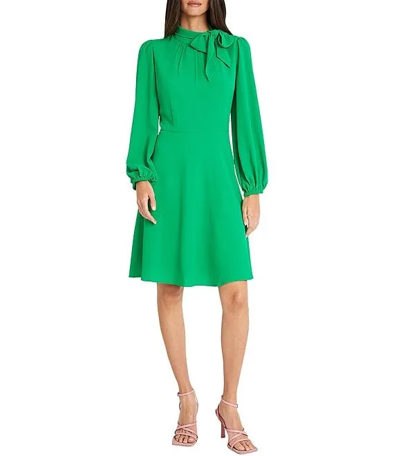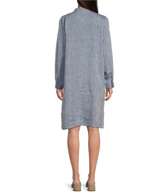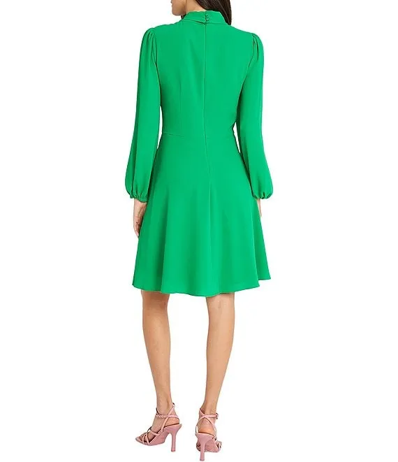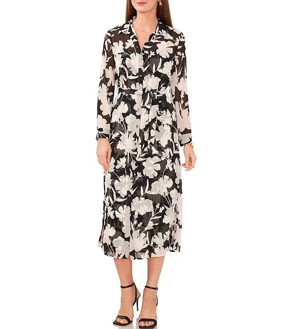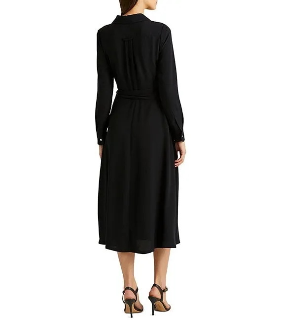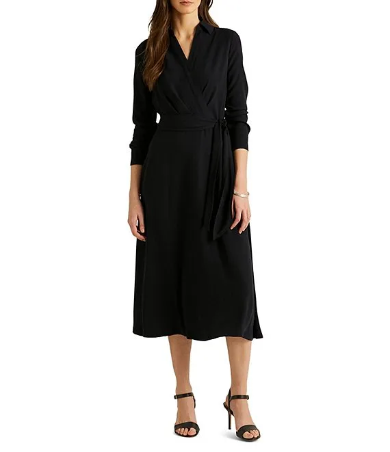 Lauren Ralph Lauren Faux Wrap Surplice V-Neck Long Sleeve Midi Shirt Dress