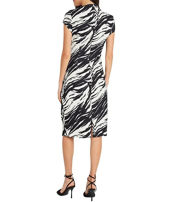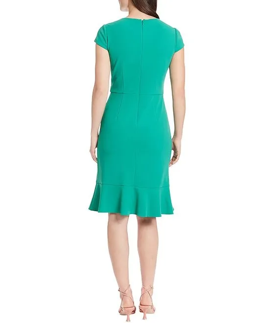 Short Sleeve V-Neck Front Cascade Ruffle Scuba Dress