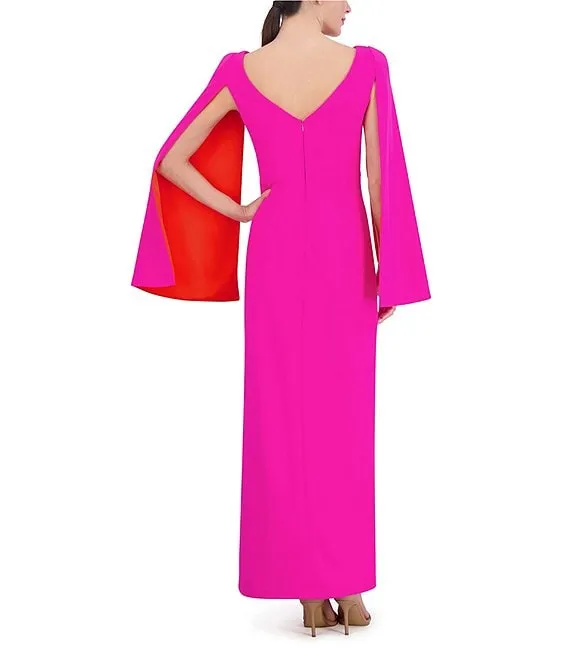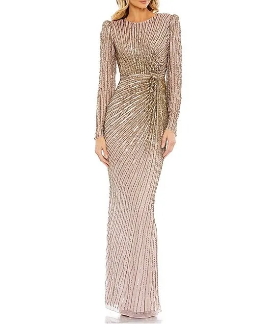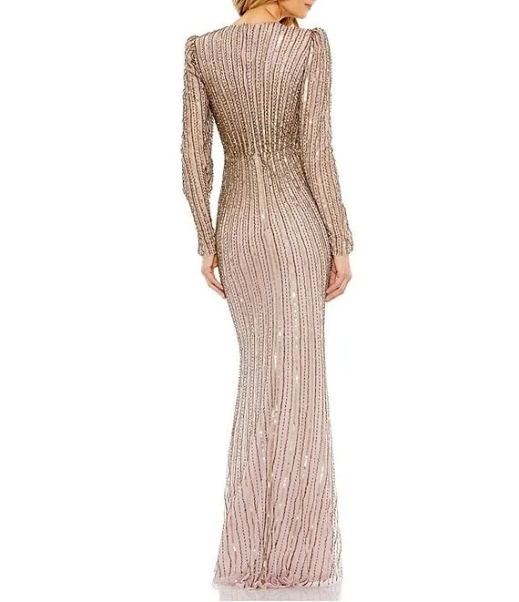 Adrianna Papell Beaded V-Neck Long Sleeve Gown