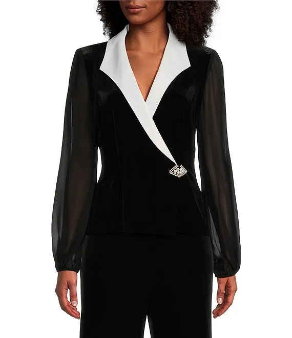 Long Sleeve Collared Side Button Velvet Blouse