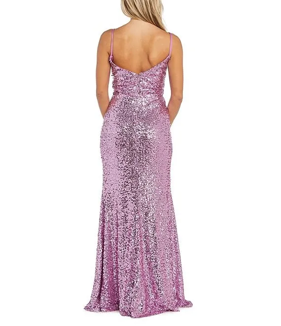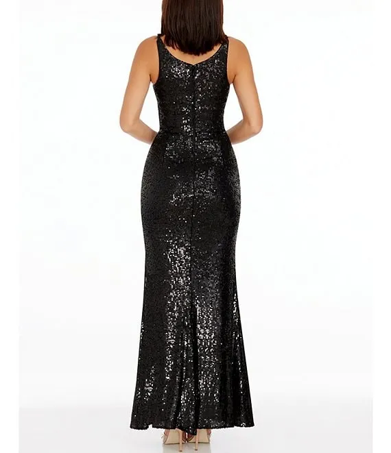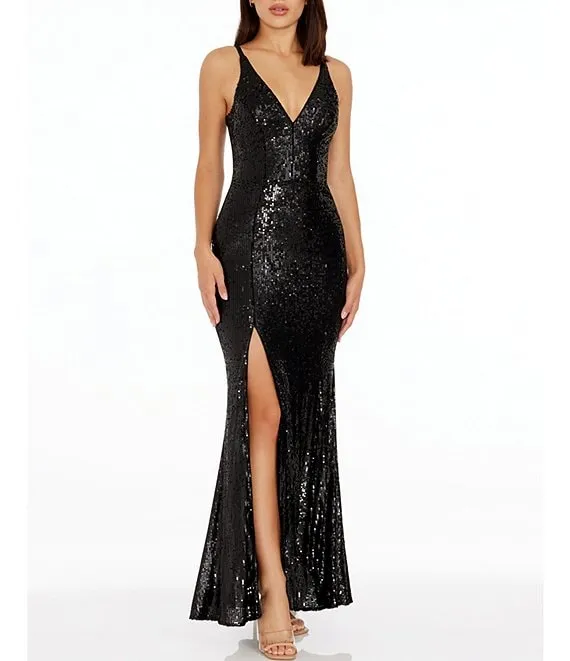 Iris Sequin Plunging V-Neck High Slit Sheath Dress