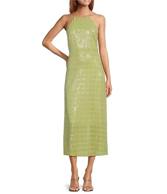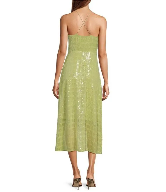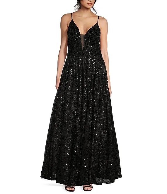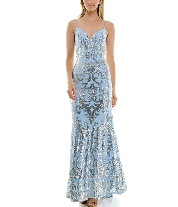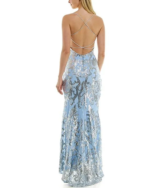 Placement Sequin Strappy Back Long Gown