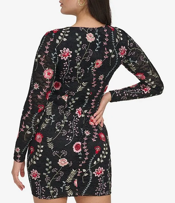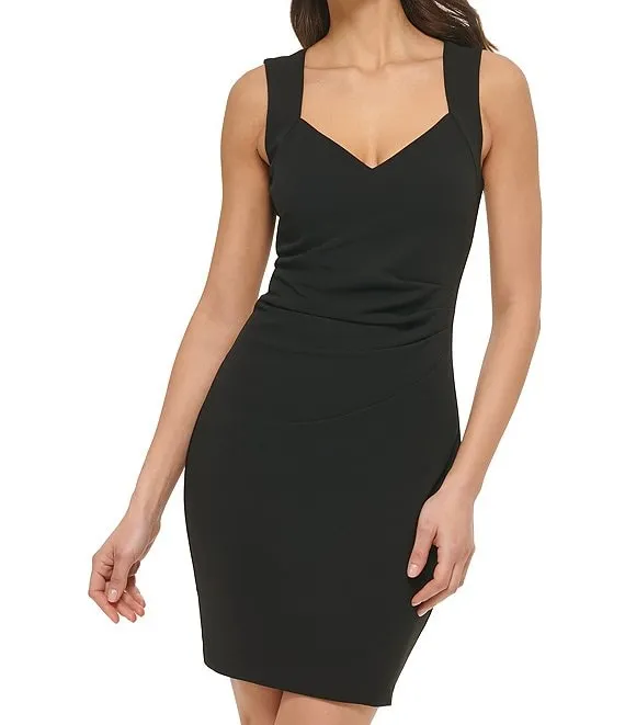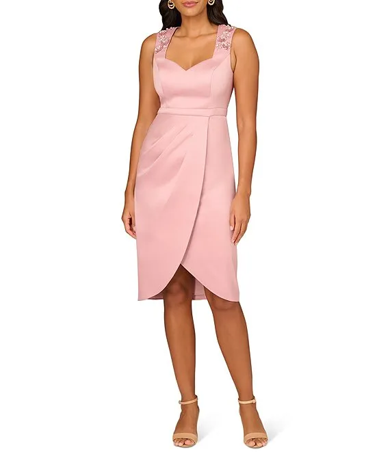 Sweetheart Neck Floral Sequin Detail Stretch Mikado Tulip Sheath Dress