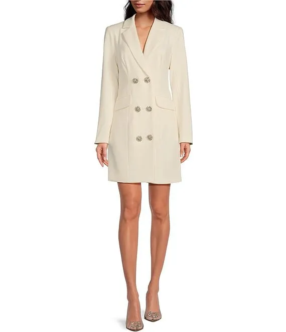 Katana 3 Notch Lapel Collar Long Sleeve Button-Front Flap Pocket Sheath Blazer Dress