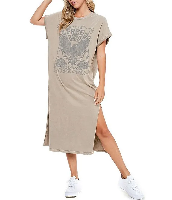 Short Sleeve Free Bird T-Shirt Midi Dress