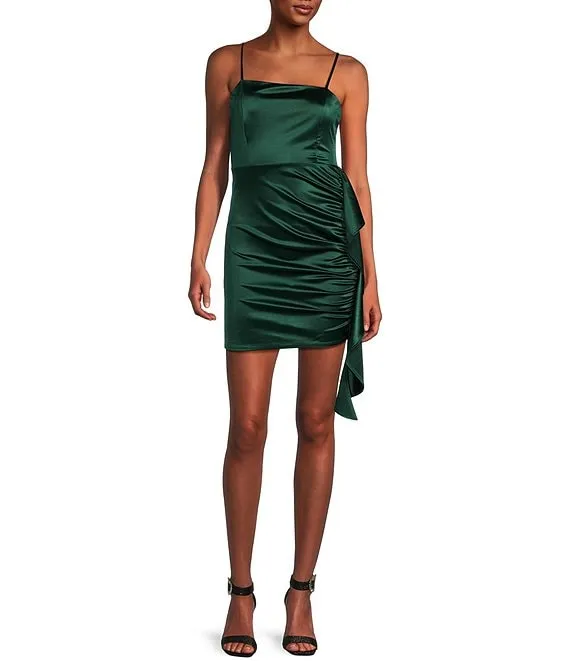 Sleeveless Slight A-Symmetrical Hemline And Ruffle Down Dress