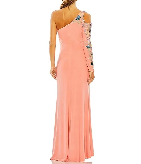 Mac Duggal Floral Beaded One Shoulder Asymmetrical Neck Gown