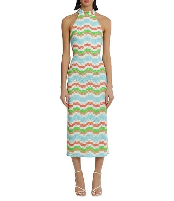 Crochet Mock Halter Neckline Sleeveless Midi Dress