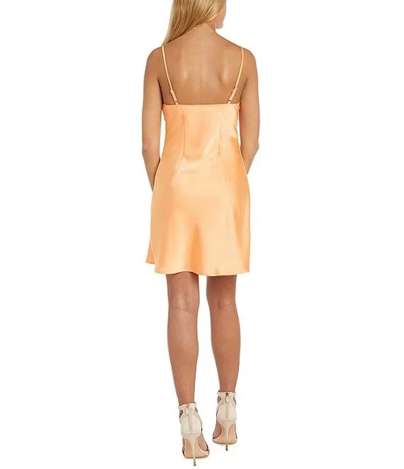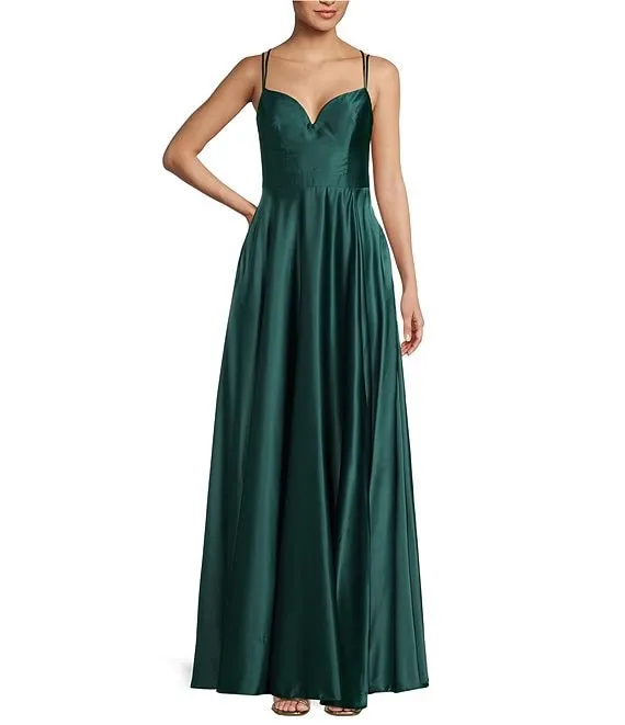 Satin Sweetheart Neck Front Slit A-Line Dress