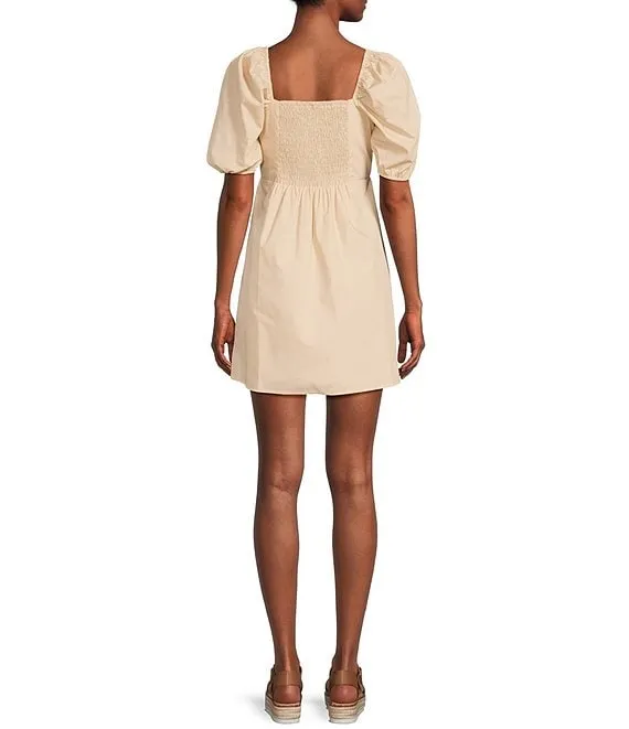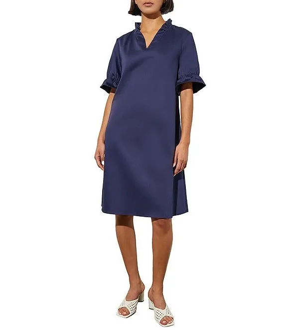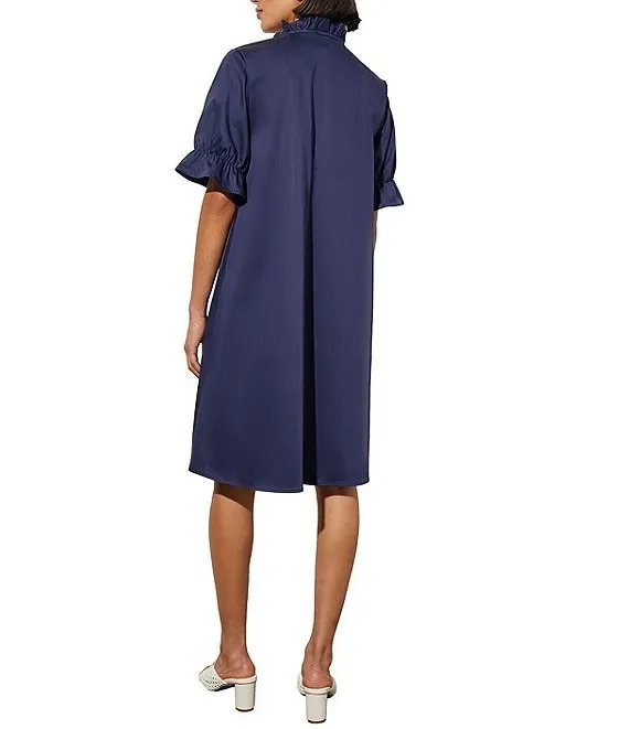 Cotton Poplin V-Neck Short Sleeve Ruffled Shift Dress