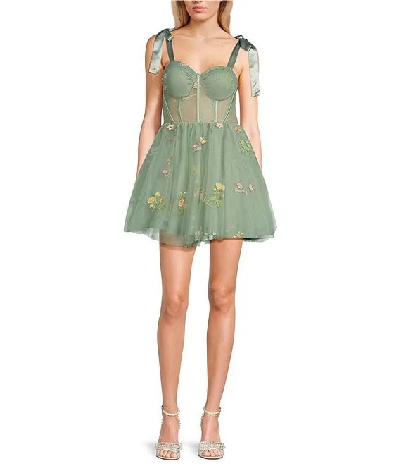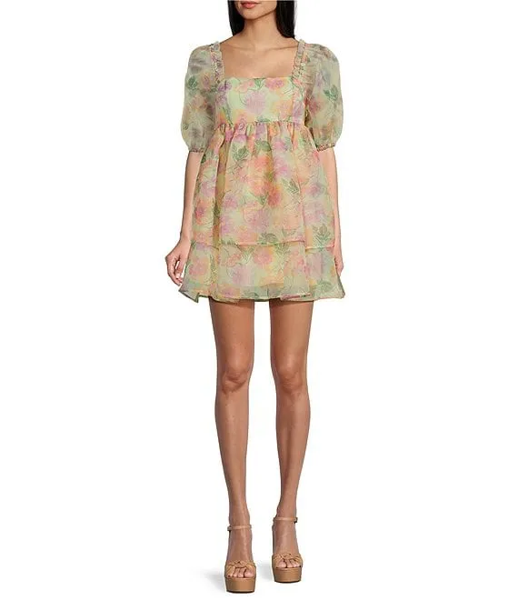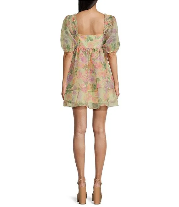 Organza Short Puff Sleeve Floral Babydoll Dress