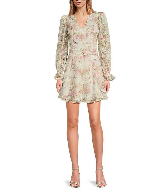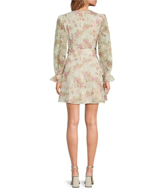 Haisley Floral Print V Neck Long Sleeve Belted Mini Dress
