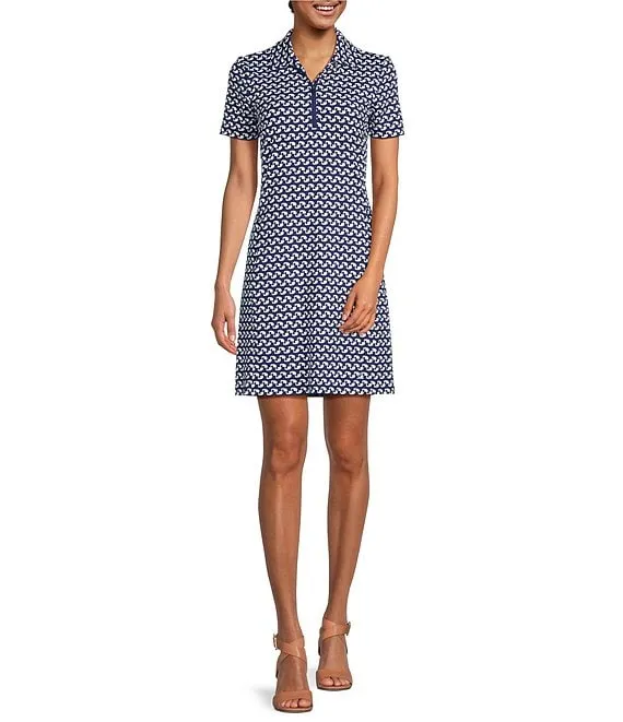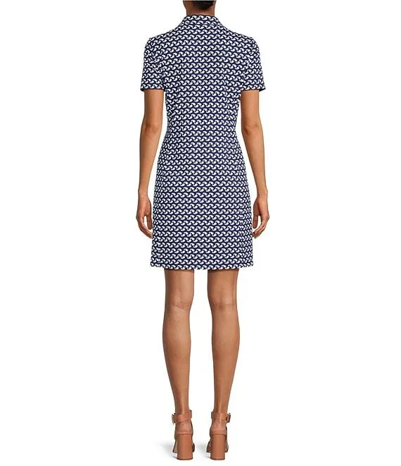 Ritchie Catalina Cloth Knit Geo Stripe Print Point Collar Short Sleeve Pocketed A-Line Dress