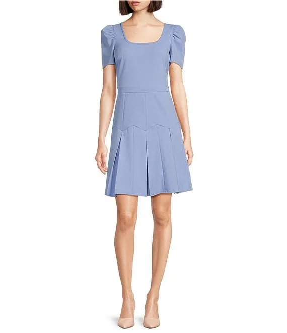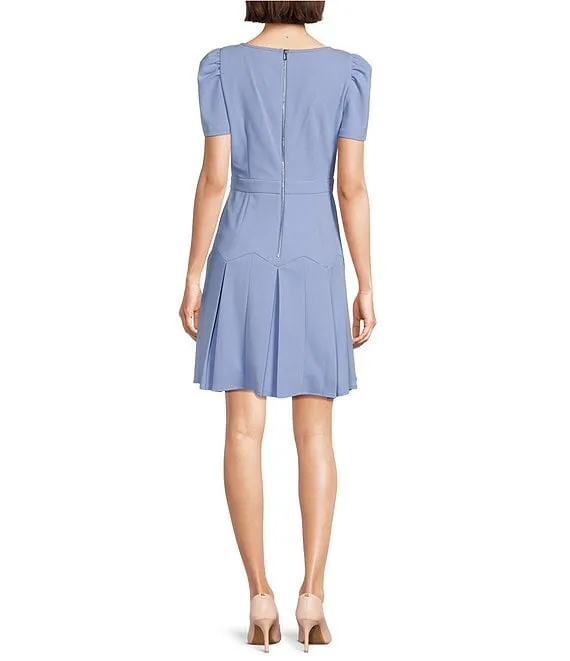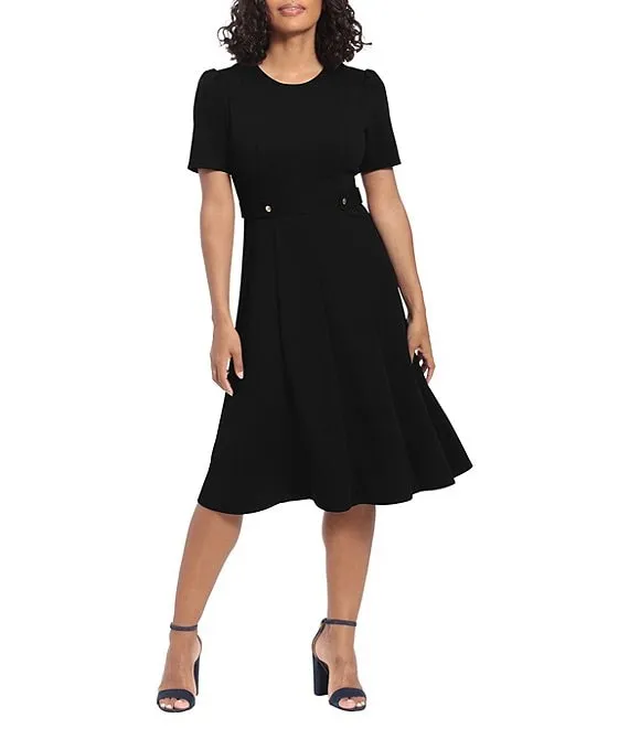 Plus Short Scuba Crepe Cut Bodice Fit & Flare Dress