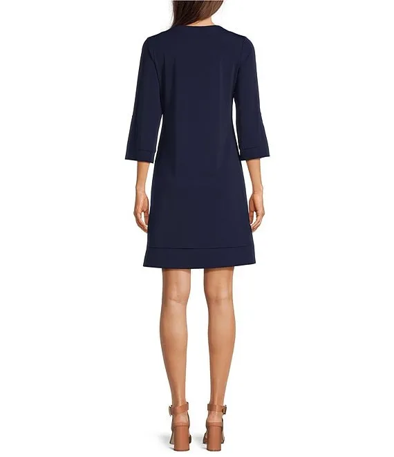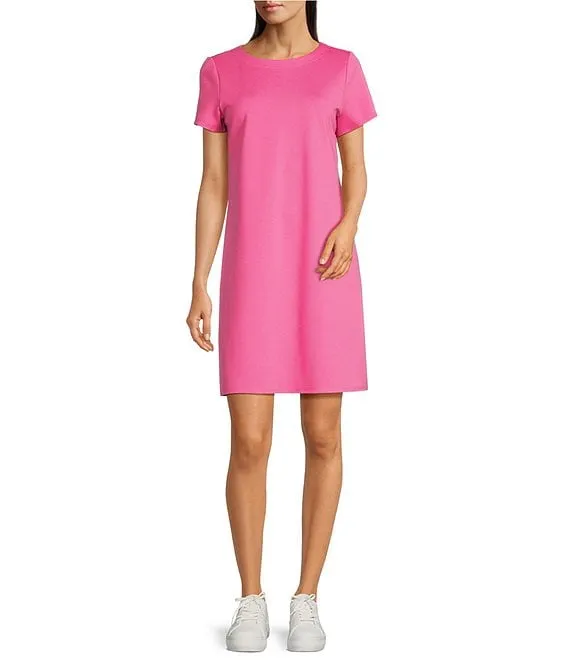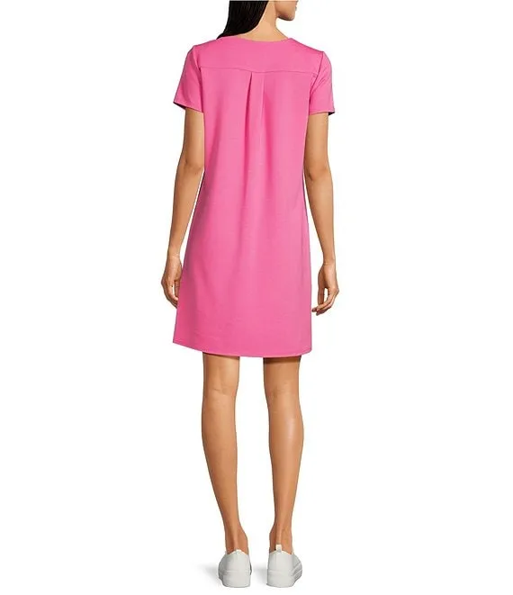 Megan Side Slit Short Sleeve Split Round Neck Shift Dress