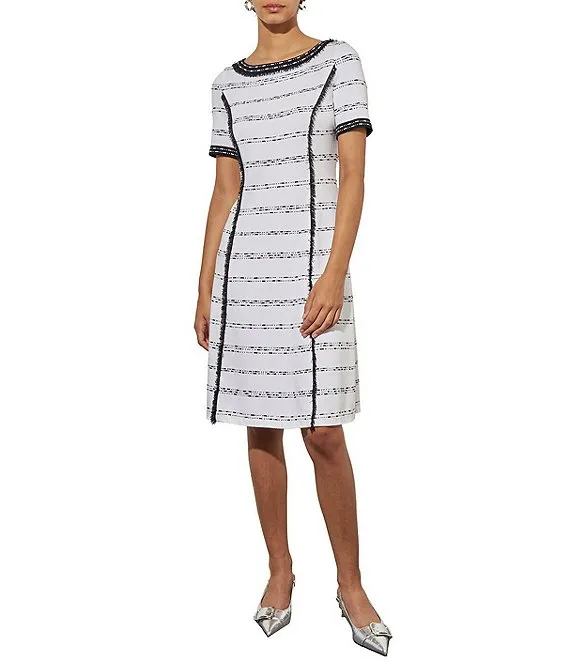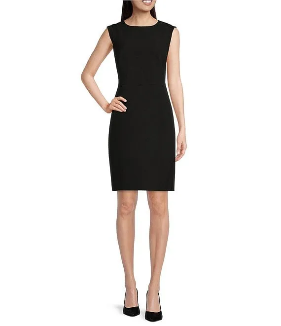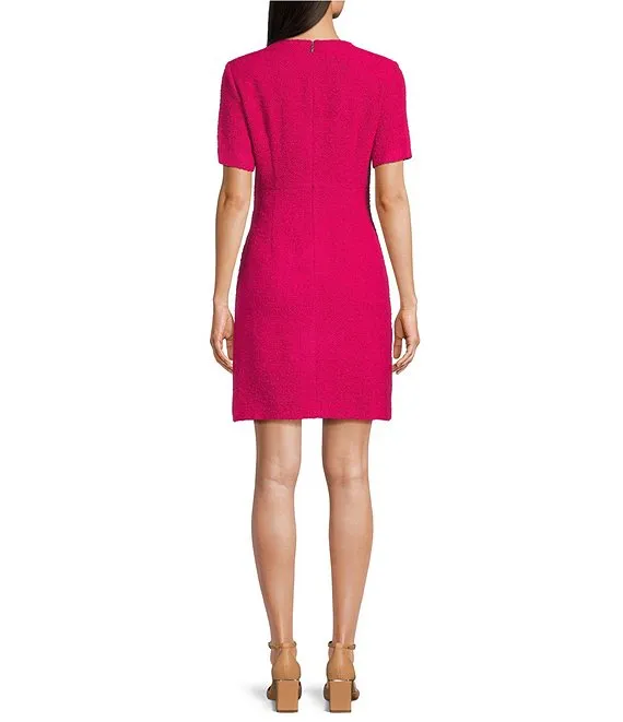 BOSS by Hugo Boss Docanah Tweed Wool Blend Woven Crew Neck Short Sleeve Flap Pocket Sheath Dress