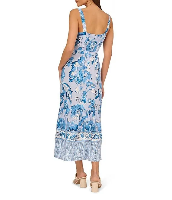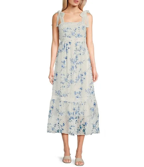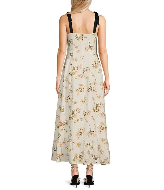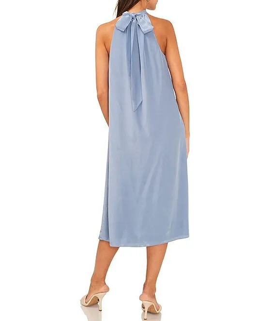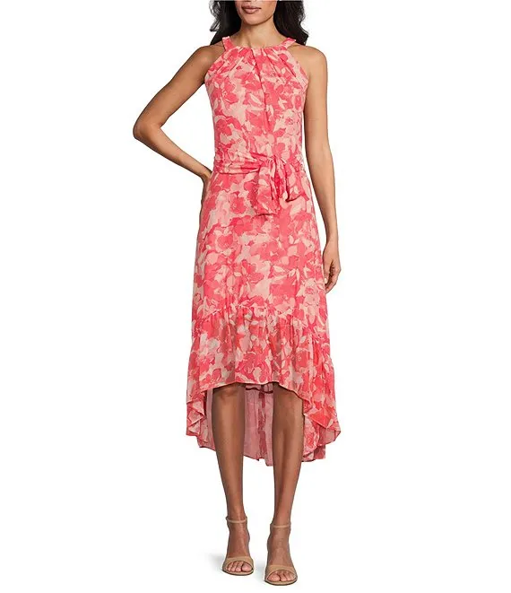 Sleeveless Halter Neck Tie Waist Floral Chiffon Midi Dress