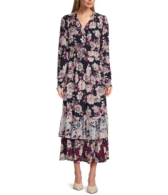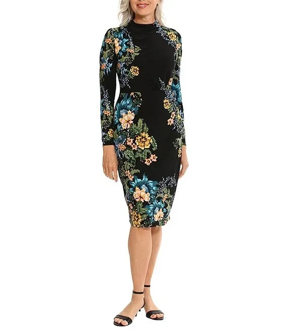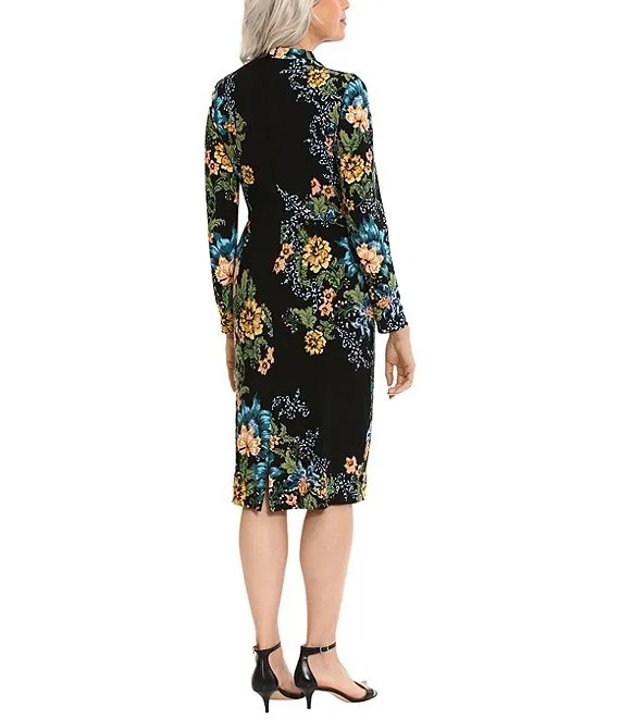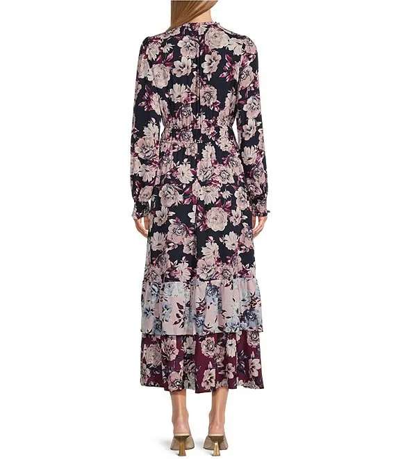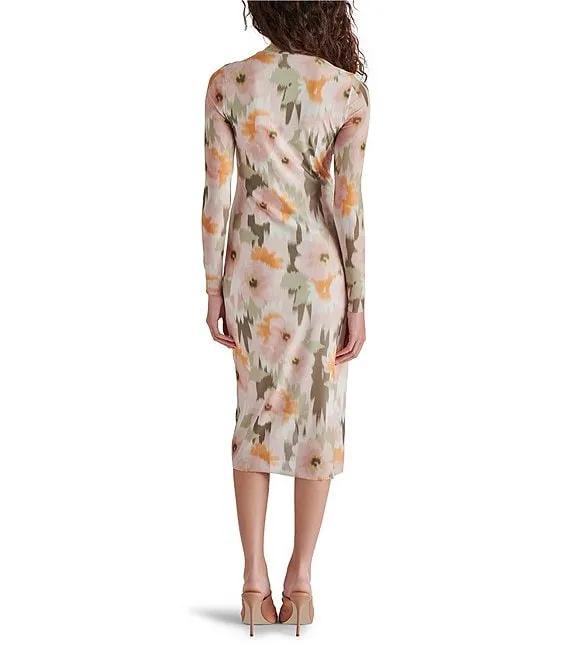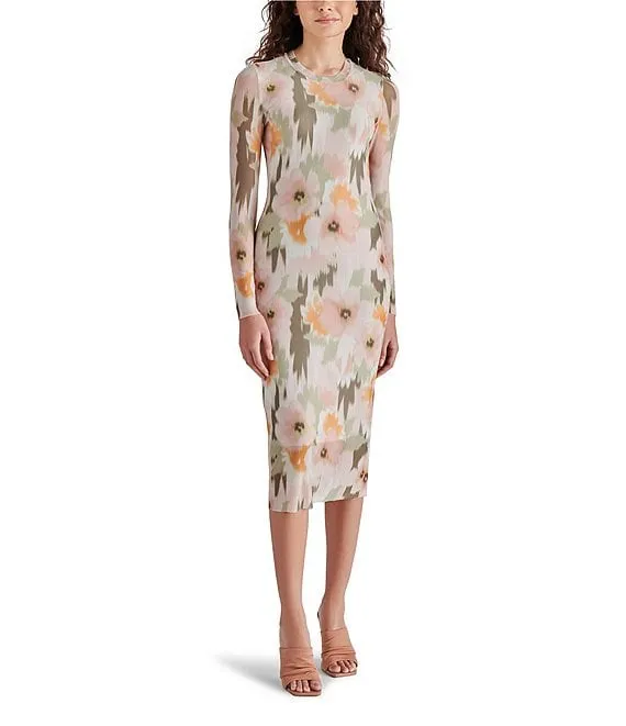 Hailee Floral Printed Mesh Crew Neck Long Sleeve Dress