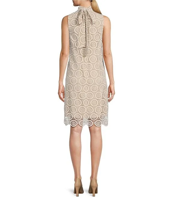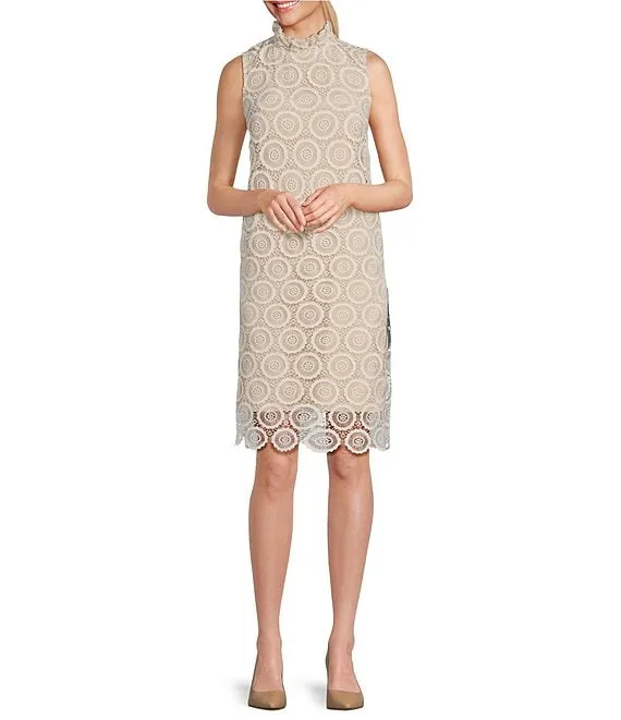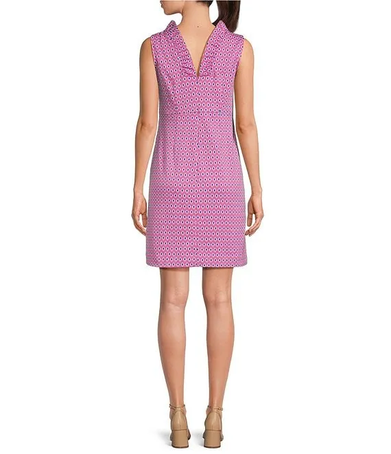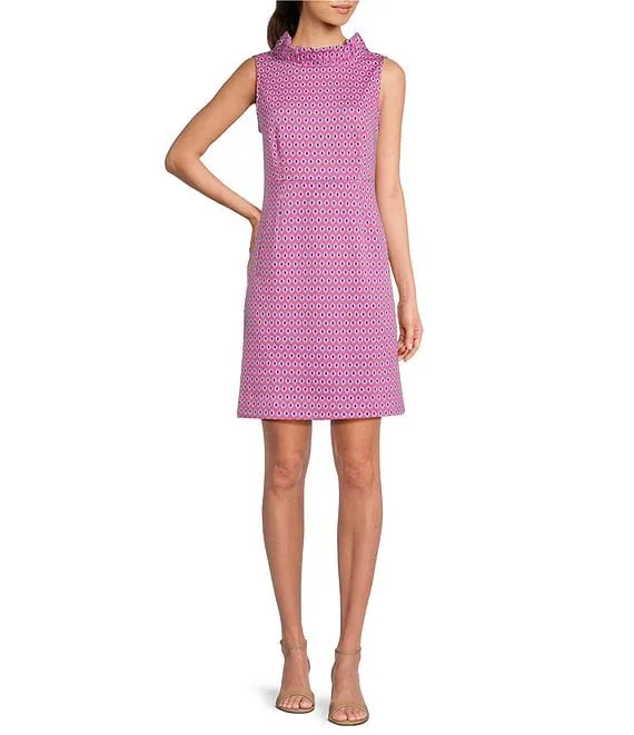 Erica Diamond Jacquard Ruffle Neckline Sleeveless Sheath Dress