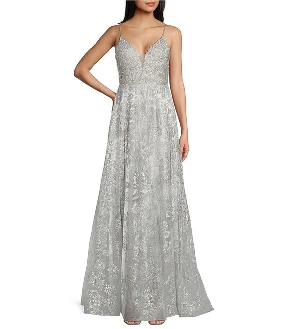 Sherri Shine V-Neck Spaghetti Strap Long Dress