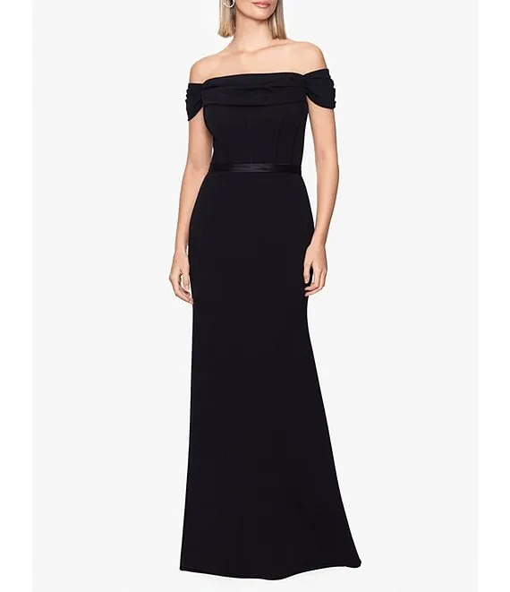 Stretch Off-the-Shoulder Short Sleeve Gown