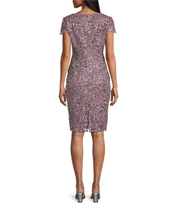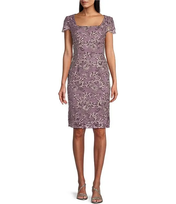 Cap Sleeve Square Neck Embroidered Sheath Dress