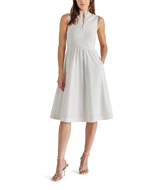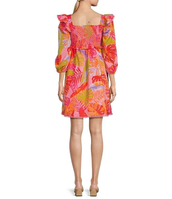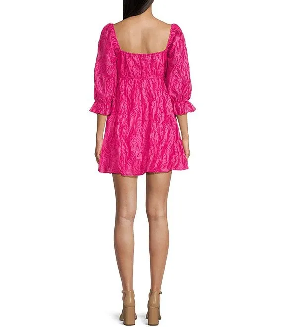Eden Ruched Square Neck Shoulder Trim Pocketed 3/4 Sleeve A-line Dress