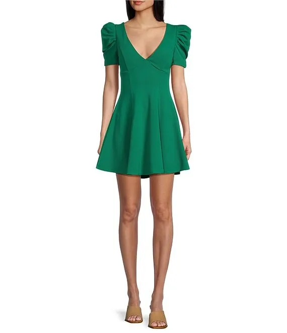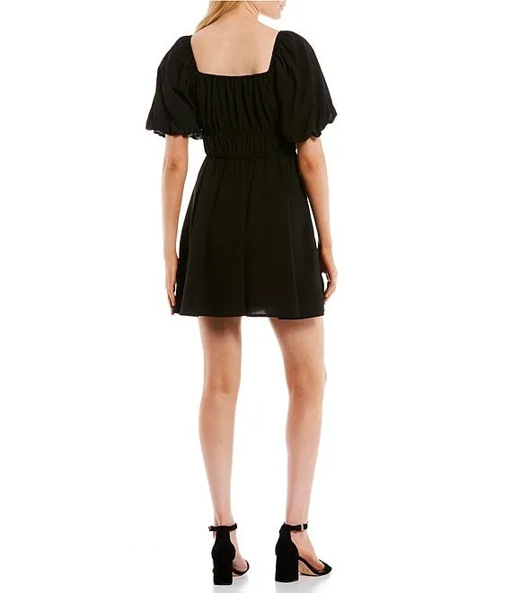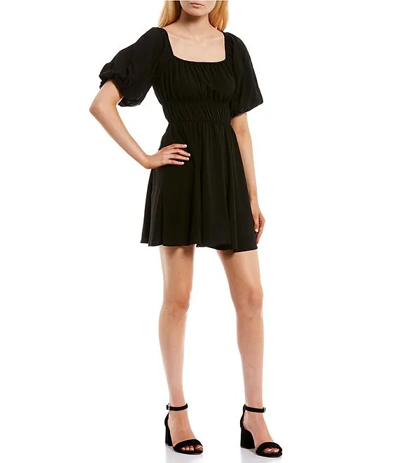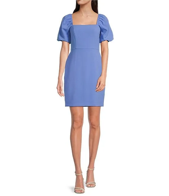 Stretch Square Neck Short Puffed Sleeve Sheath Dress