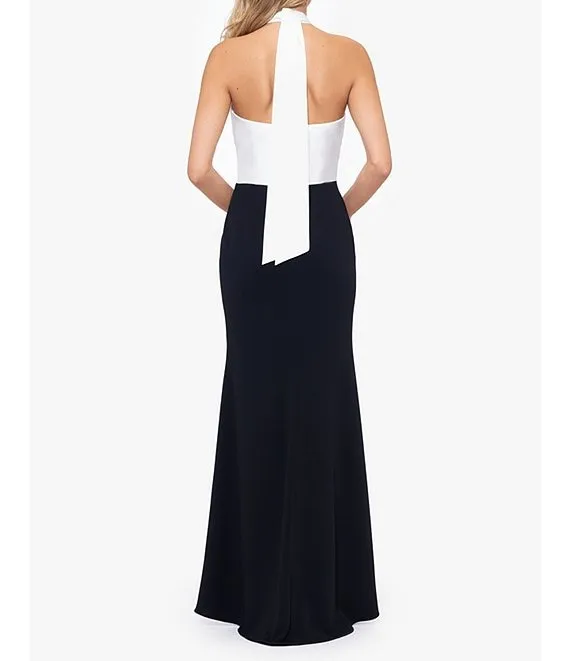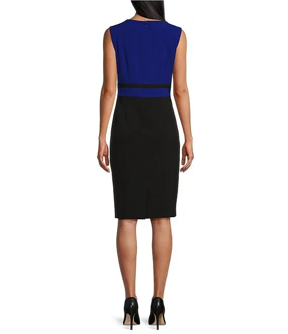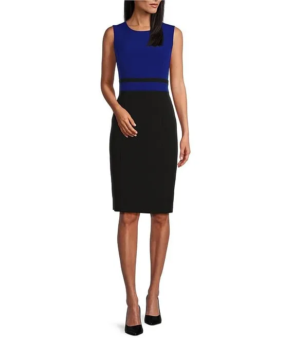 Kasper Color Blocked Crew Neck Stretch Crepe Sleeveless Sheath Dress