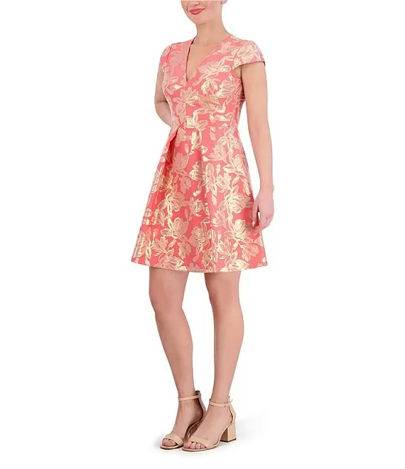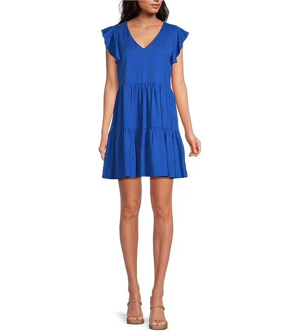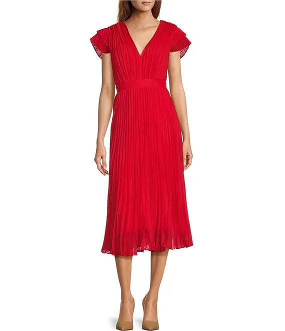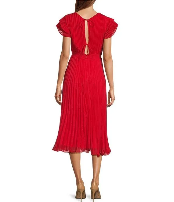 Adelyn Rae Pleated V-Neck Short Sleeve Midi Dress