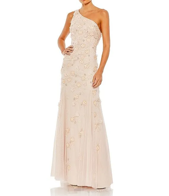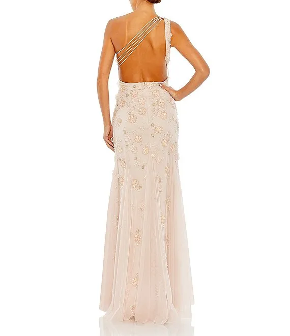 Mac Duggal Beaded One Shoulder Sleeveless Fit and Flare Gown
