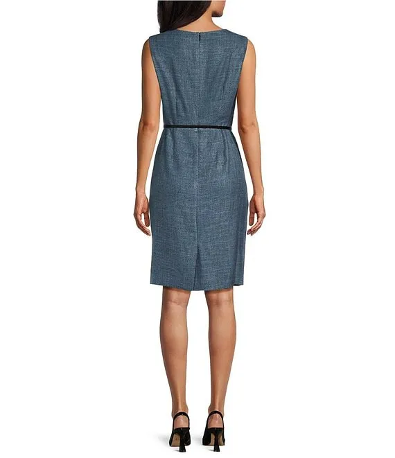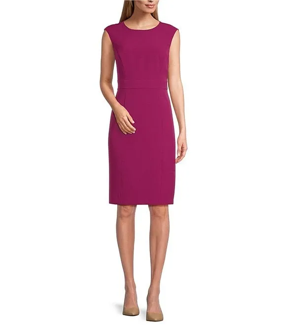 Kasper Stretch Crepe Sleeveless Crew Neck Princess Seam Sheath Dress