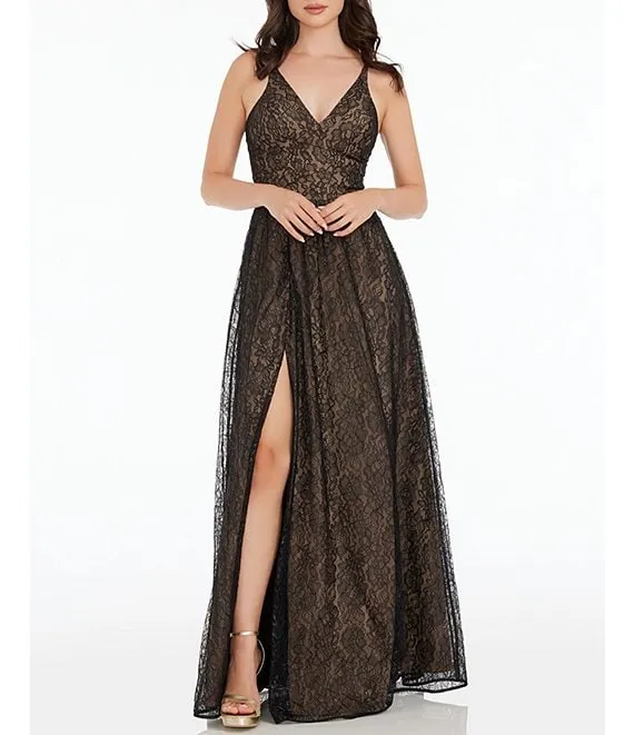 Jordan Deep V-Neck Sleeveless Side Front Slit Gown