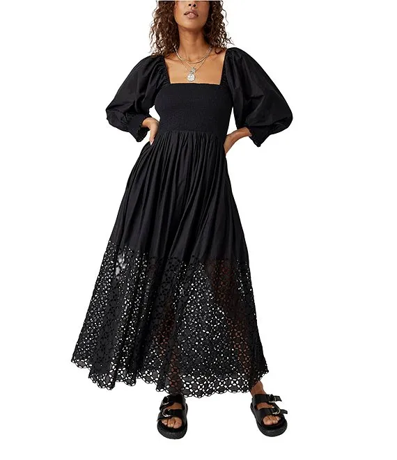 Perfect Storm Square Neck Long Sleeve Embroidered Midi Dress