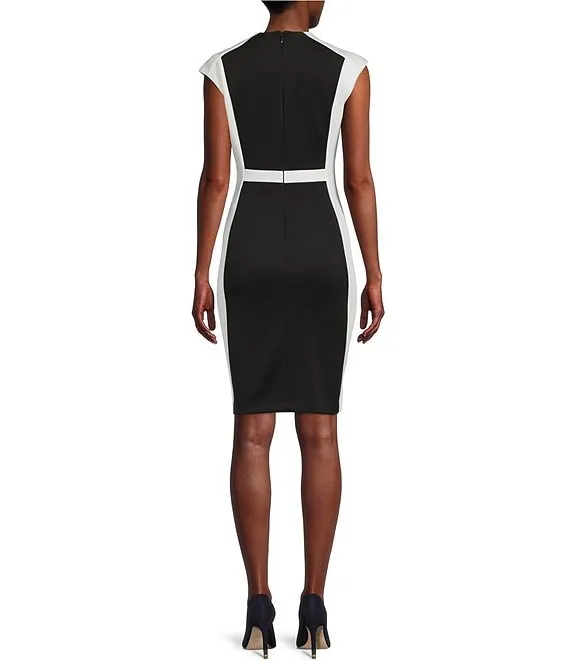 Calvin Klein Cap Sleeve Jewel Neck Scuba Contrast Color Block Sheath Dress